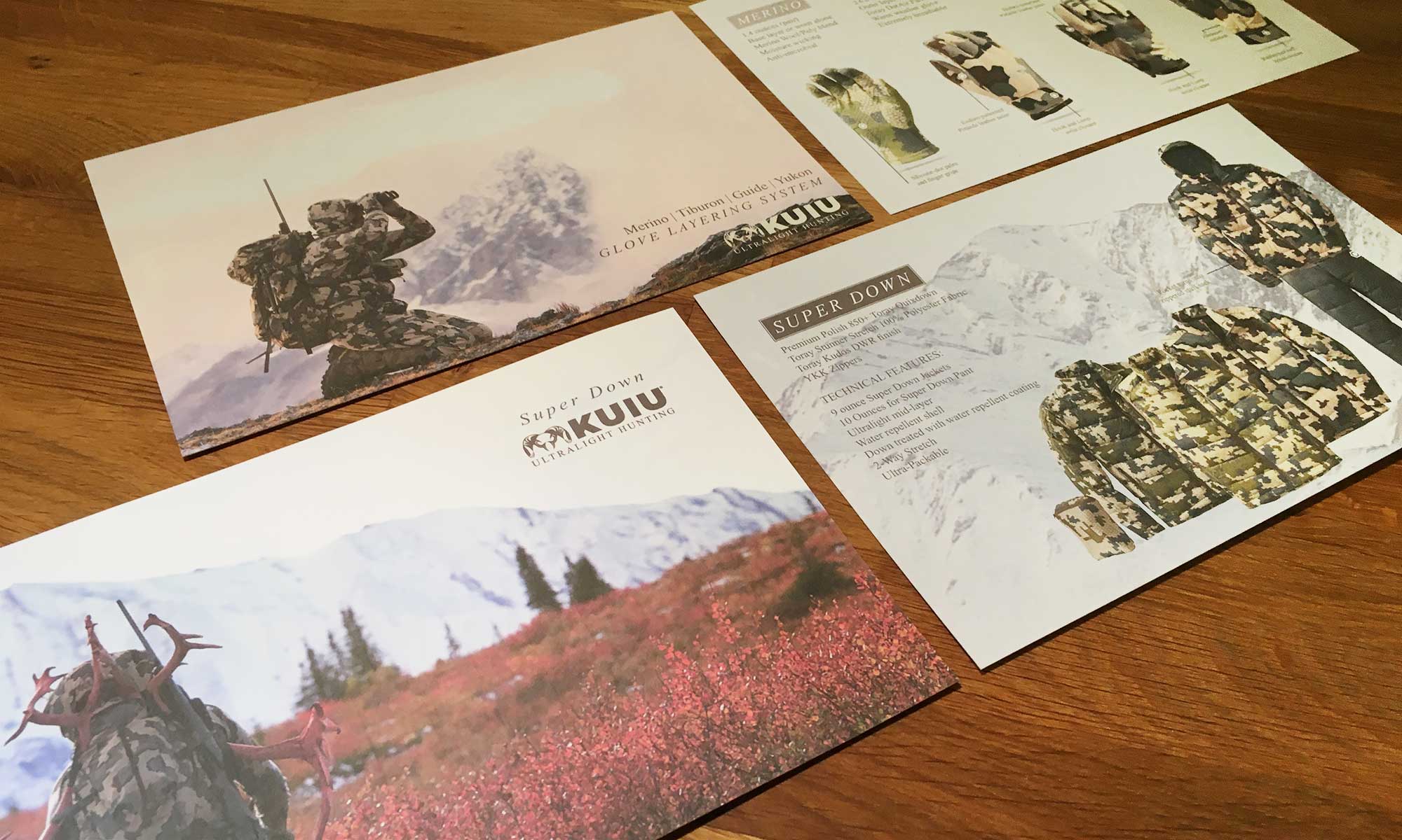 KUIU is a high performance hunting outfitter with a reputation built on a quest for high-quality uncompromising products. In the late 2000’s KUIU founder Jason Hariston contacted me to create three camouflage patterns for their product line. They had very specific directions and were integral in the look and feel of the patterns. It is always best to be in the environment you’re designing camouflage for, and Jason grew up hunting in these mountainous areas. The result is a highly successful line of products for any hunting situation. After the product line was launched I was asked to design product cards and fitment guides.