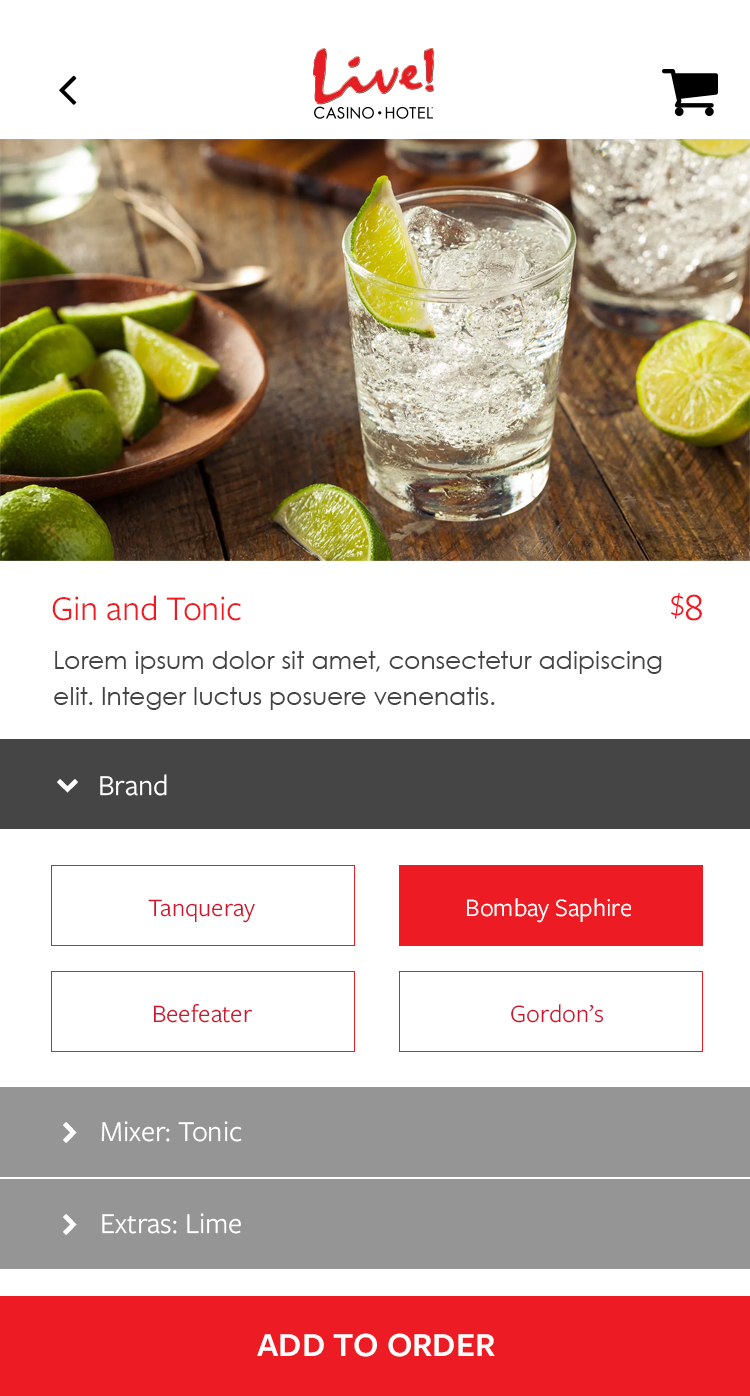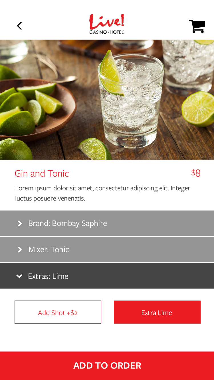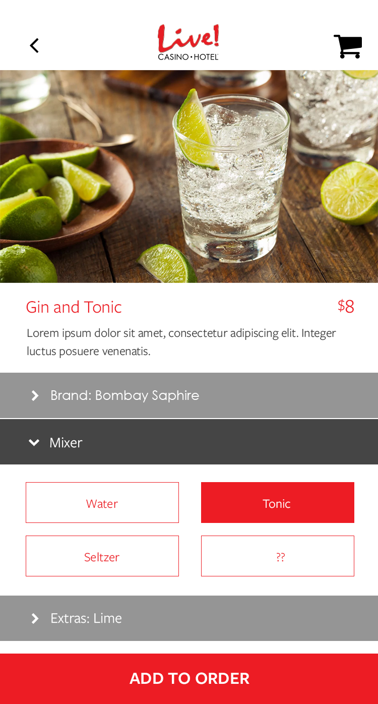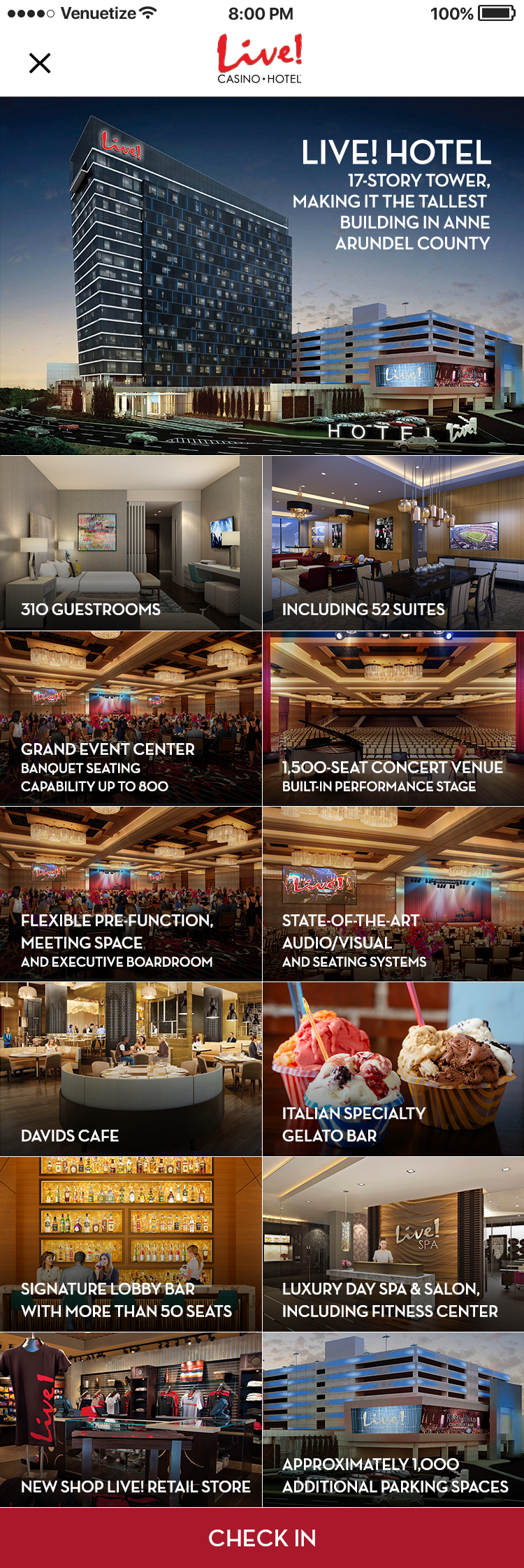 This app was designed for the Baltimore area casino Maryland Live. The goal was to alleviate tension points by allowing users to navigate the casino, reset pins in their account, book hotel rooms, use their phone as a hotel key, view rewards, and have in seat ordering. There was also a watch version for the wait staff to allow them to respond to and fulfill orders, and notify them where the guest is sitting in the casino.